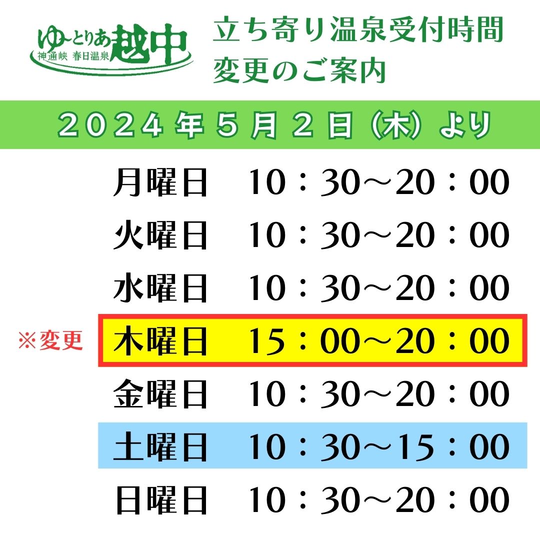 2024年5月2日(木)より、毎週木曜日の営業時間が変更になります。