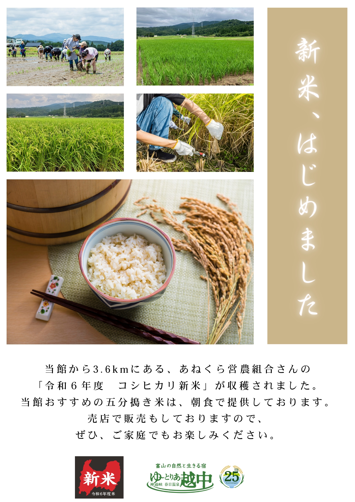 当館から3.6kmにある、あねくら営農組合さんの「令和6年度 コシヒカリ新米」が収穫されました。