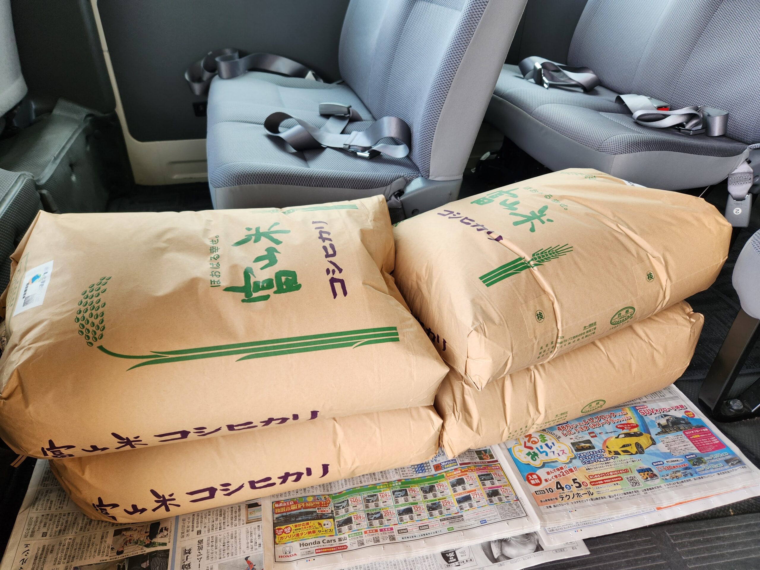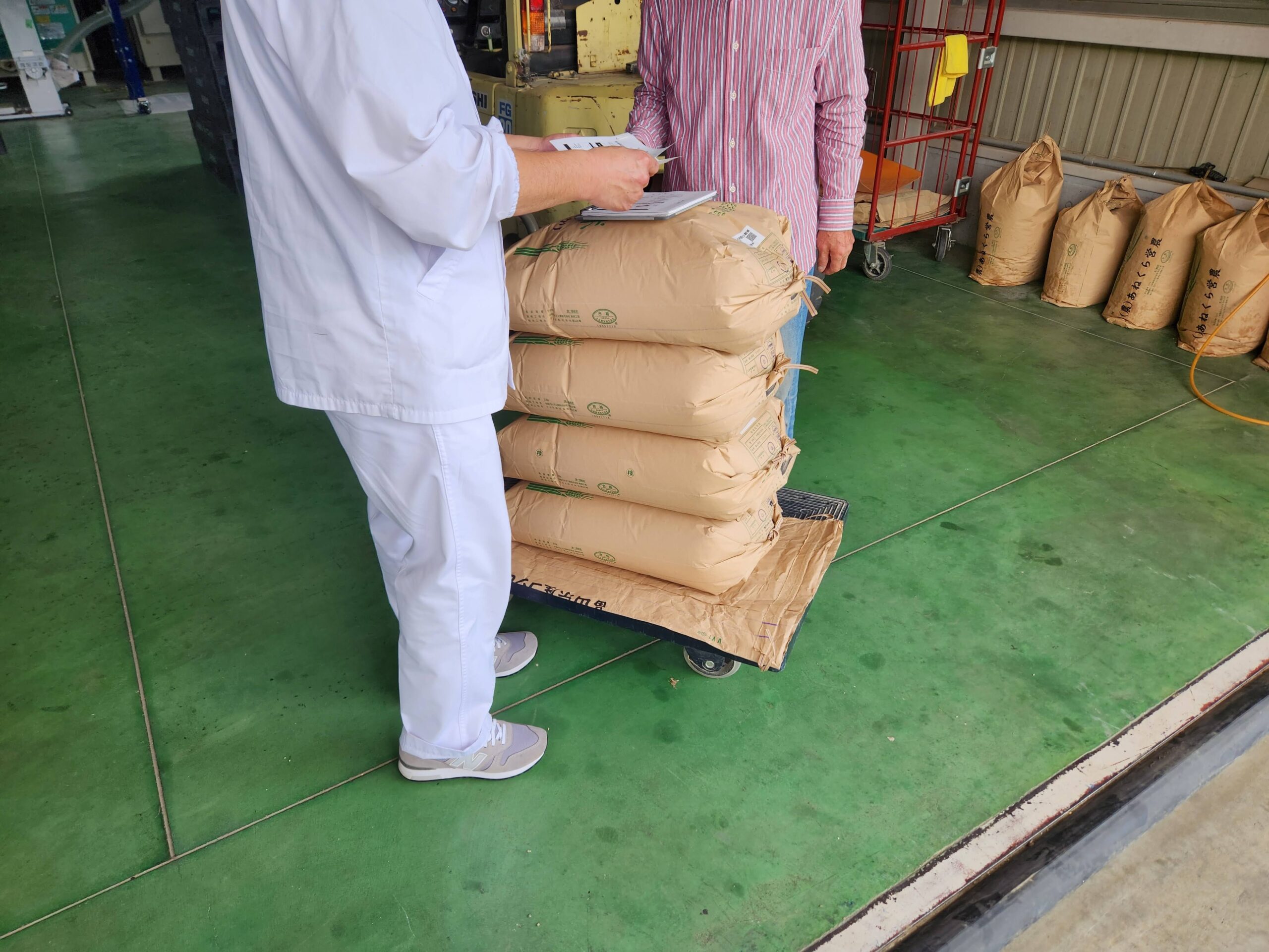 お伺いした時点では袋詰めされていたのは4袋だけで、これから袋詰めの作業があるそうです。写真左下の大きな袋に入っている新米を、小分けに袋詰めされるそうです。