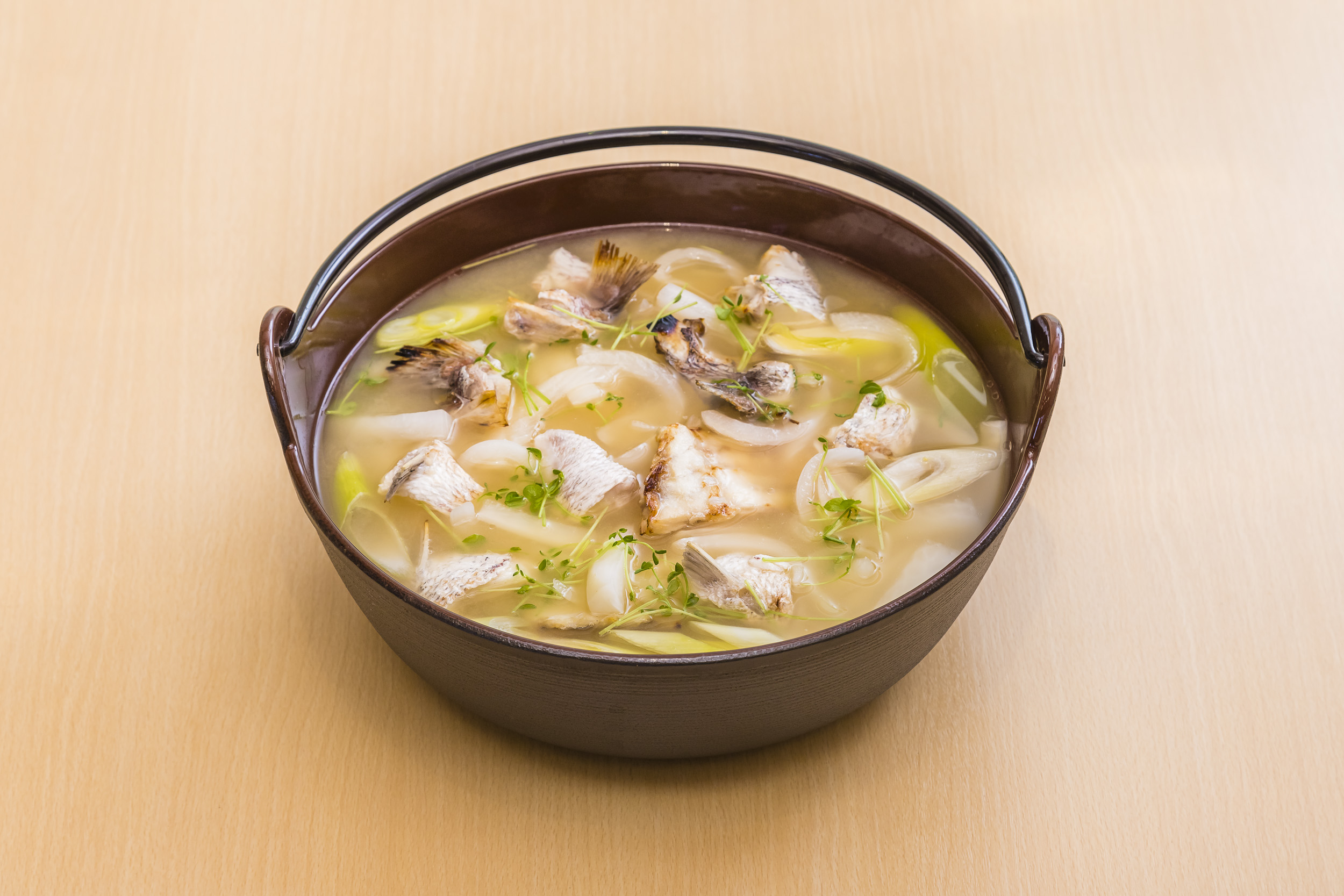 上:新じゃがいもとトウモロコシの味噌汁(6月の山)下:鯛出汁味噌汁(6月の海)