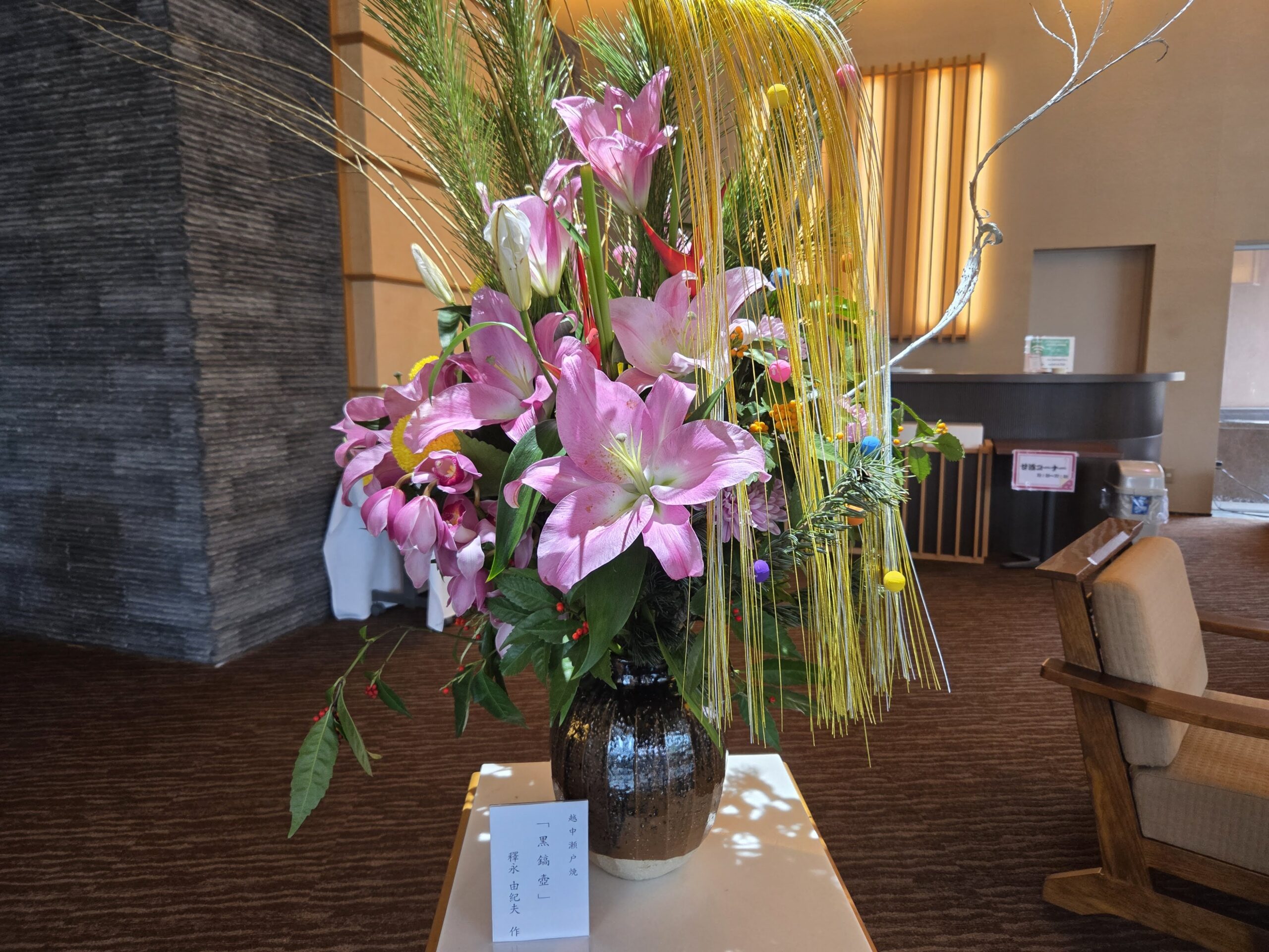 ロビーのお花もお正月仕様になっています。