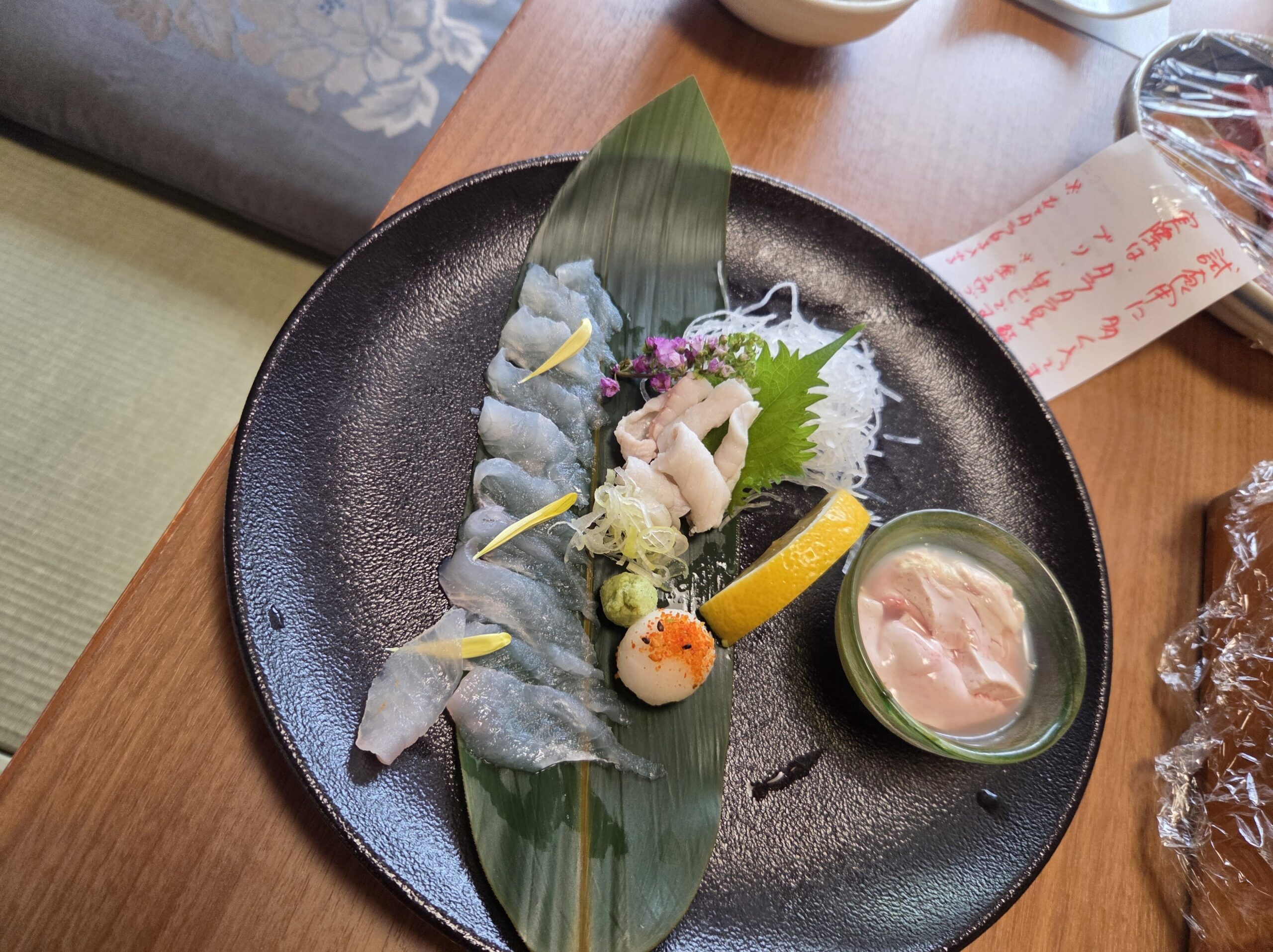 例えばこちらはお造りの「魚津産寒カワハギの肝添え」です。