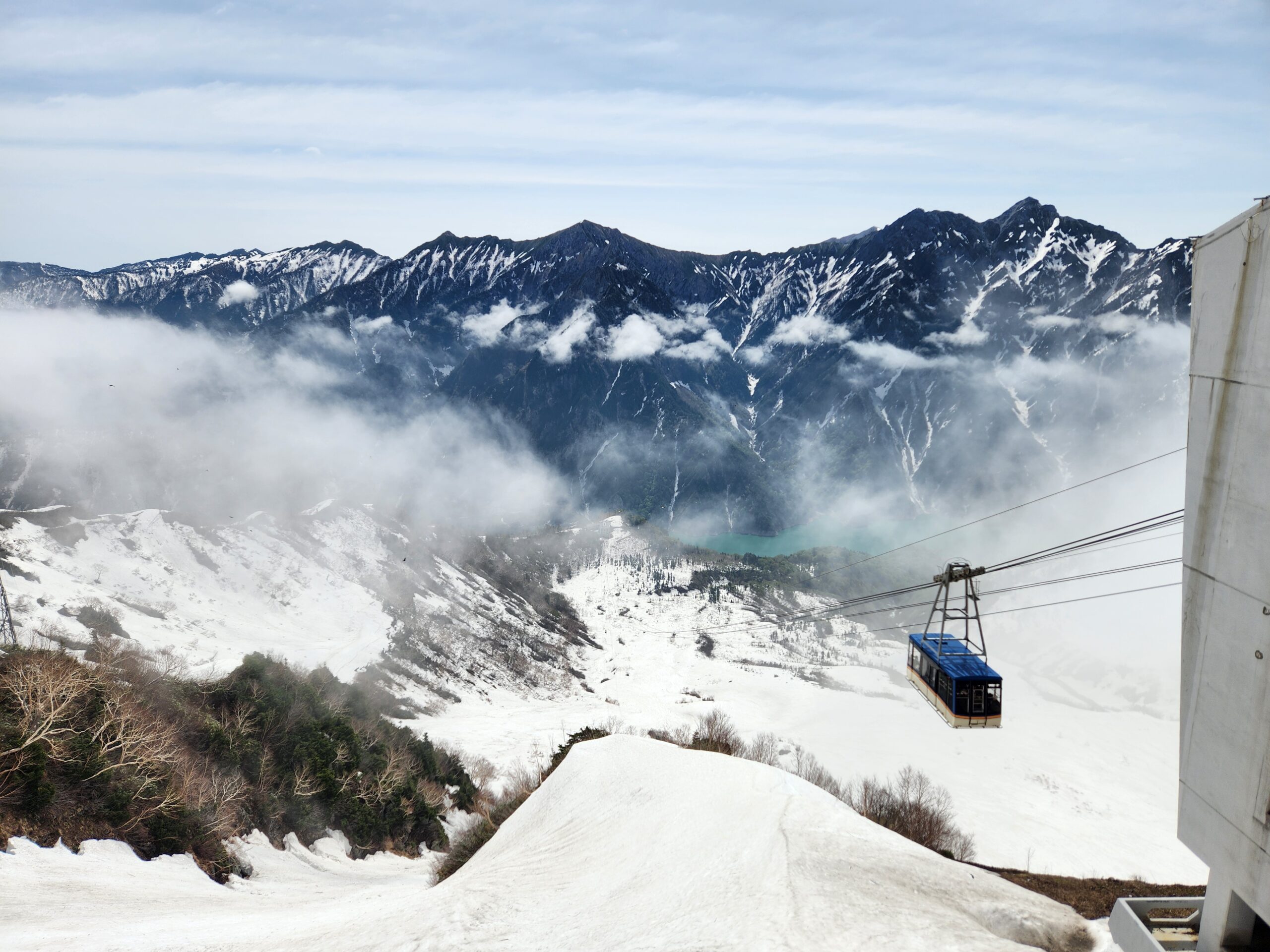 大観峰から黒部平へつながる立山ロープウェイは、一本も支柱がない珍しいロープウェイです。