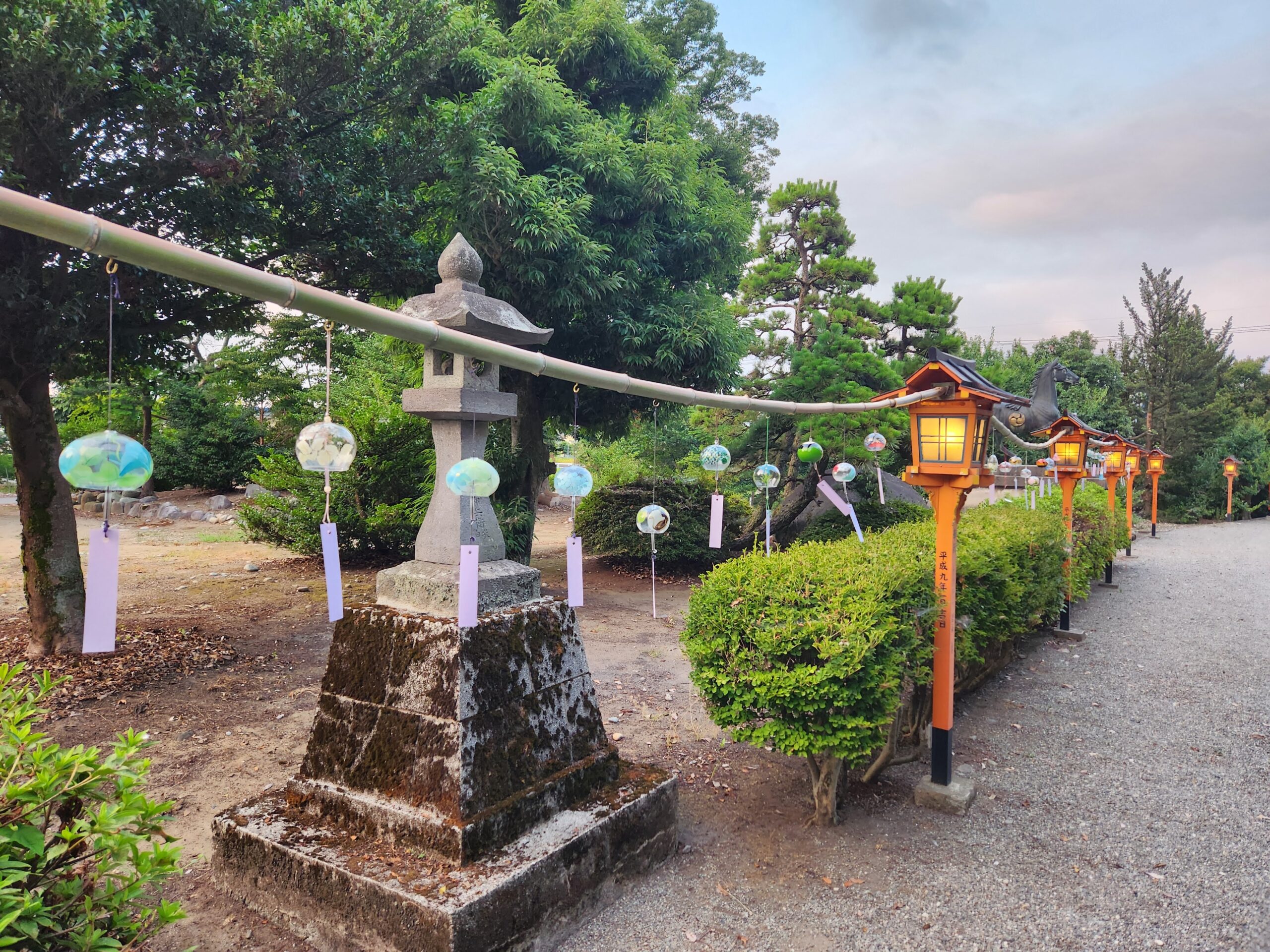 写真は夕方に撮影したものですが、参道の灯籠に明かりがともっていて素敵でした。