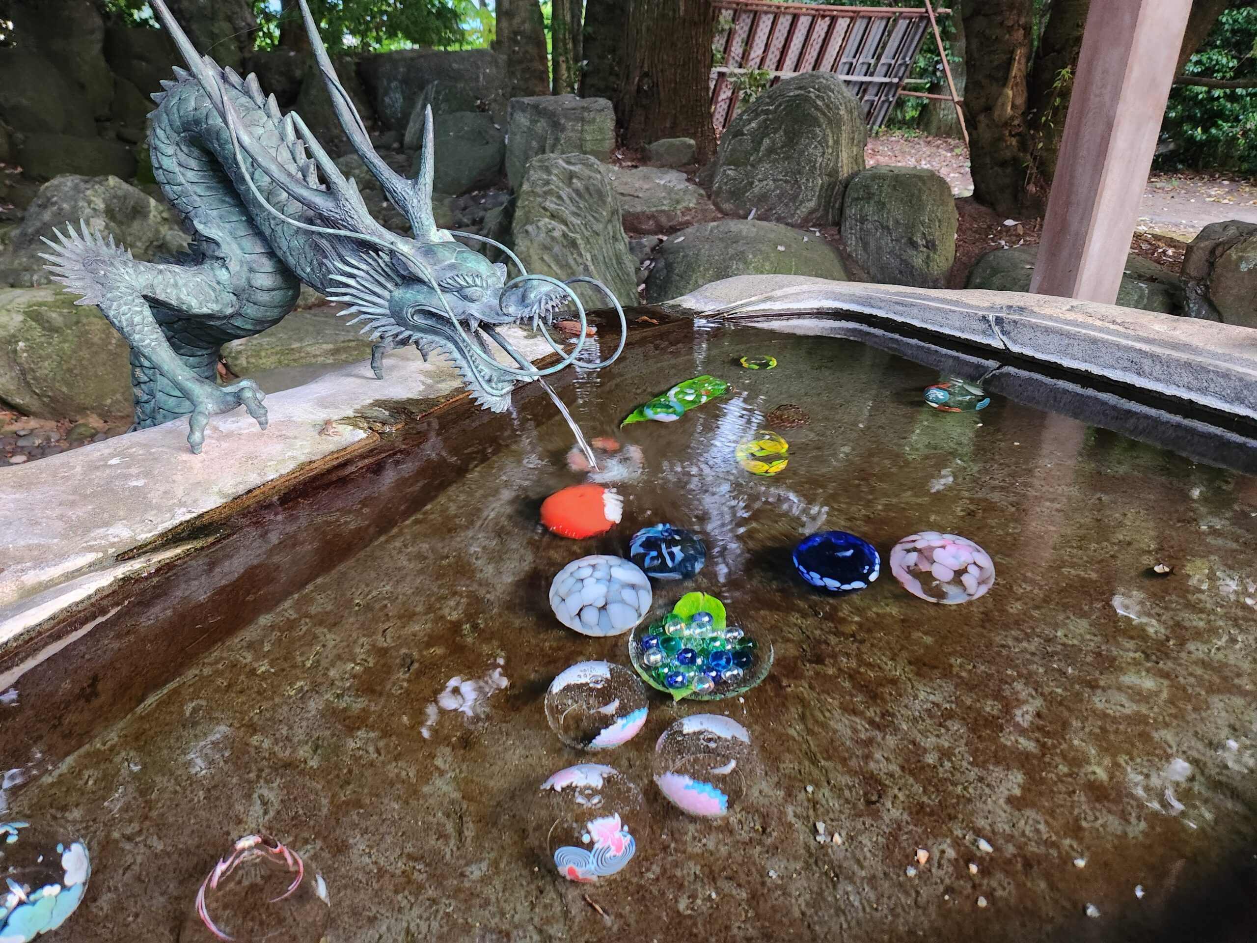 手水鉢の中にも綺麗なガラスがあり、目で見ても楽しめます。