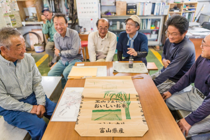 大沢野舟倉地区でつくるお米は、昔から美味しいと評判でした。それにはこの土地ならではのいくつかの理由があります。長棟(ながと)川から生活用水が一切含まれない澄んだ山の水を直接引き込み、土壌は、何代にも渡って守られた肥沃な大地です。そして、この地は富山平野から一段高い台地になっていて絶えず風が吹いています。このことが昼と夜の気温の寒暖差をもたらし、お米が美味しくなると言われています。この土地で、広さ20haを水田とし、コシヒカリを栽培しています。